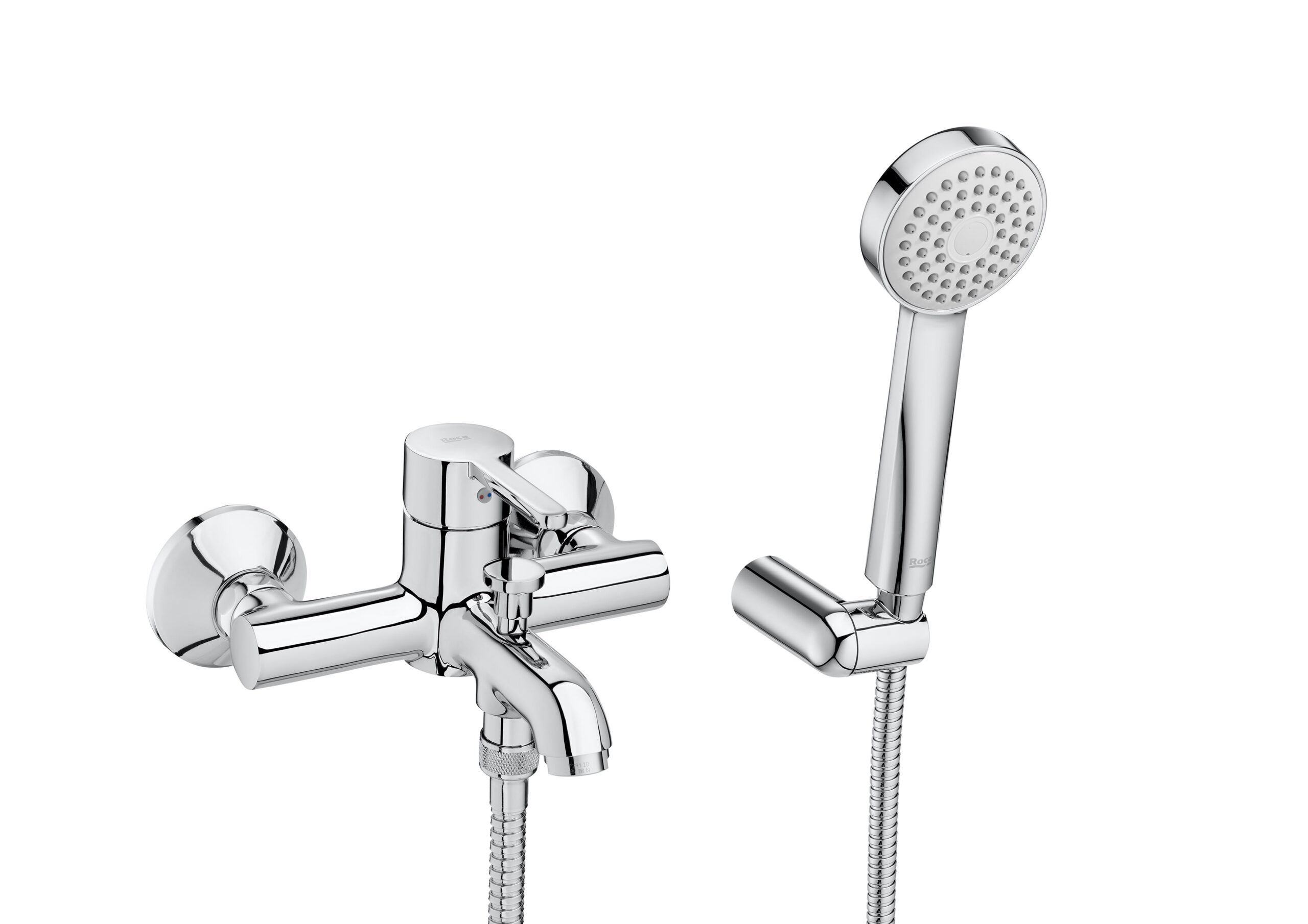 Μπαταρία λουτρού επίτοιχη με 1,70μ εύκαμπτο σπιράλ, τηλέφωνο ντους και στήριγμα τηλεφώνου.