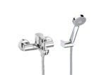 Μπαταρία λουτρού επίτοιχη με αυτόματο διανομέα, 1,70μ εύκαμπτο σπιράλ, τηλέφωνο ντους και περιστρεφόμενο στήριγμα τηλεφώνου